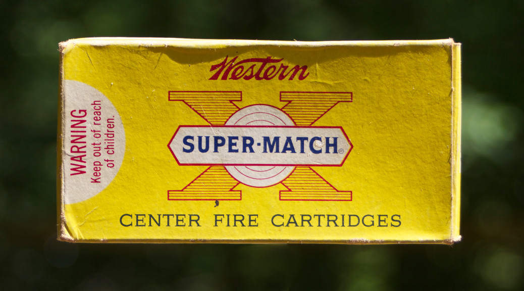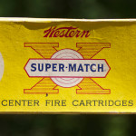 The front of the box has the Western and super-match bullseye X logos the words “Center Fire Cartridges” and a warning to keep out of reach of children.