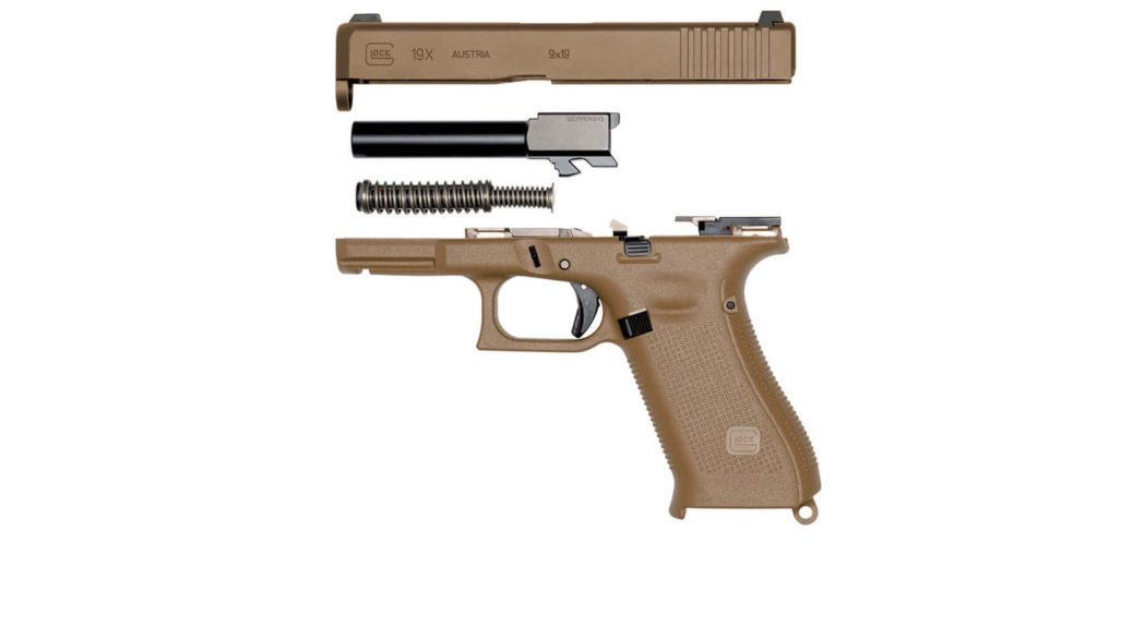 The GLOCK G19X is GLOCK’s first ‘crossover’ pistol. It has a G17 standard size frame, paired with a G19 compact size slide. It is still a locked-breech, recoil-operated, double-action-only, semiautomatic pistol fed by a detachable box magazine that is chambered in 9×19mm Parabellum.